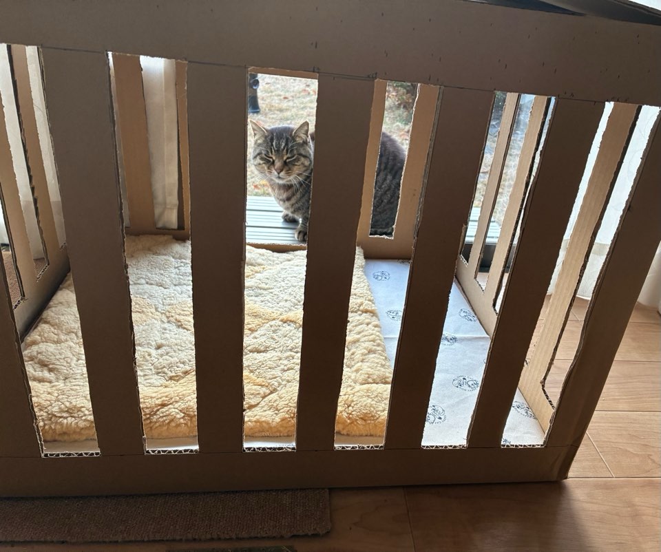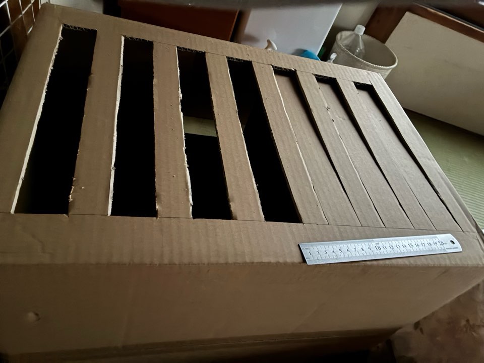 大きさぴったりだし、ダンボールならナオちゃんが気に入らなくても捨てればいいし😃