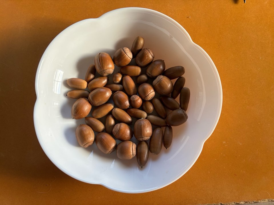 一番大きなドングリは特に喜ぶだろうと、たくさん拾いました。