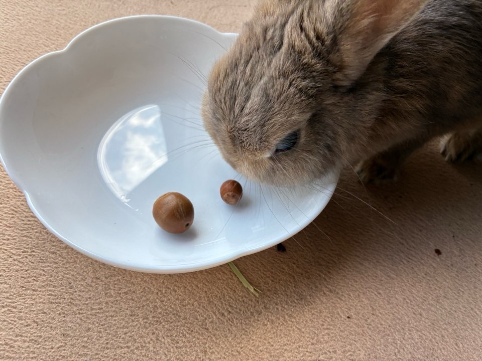 喜んでくれましたが、木の実はカロリーが高いので、一度に2〜3個ずつあげます。パリっと割る音が美味しそうです。